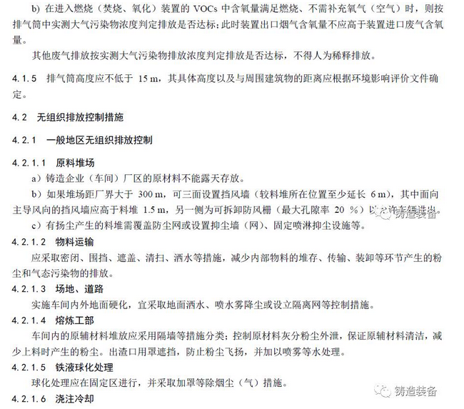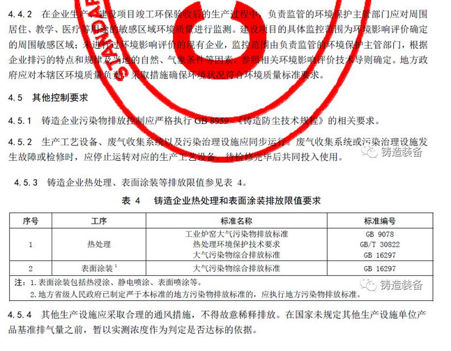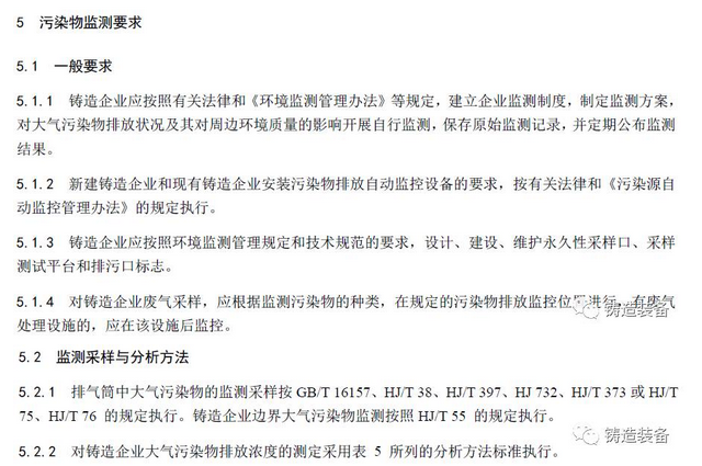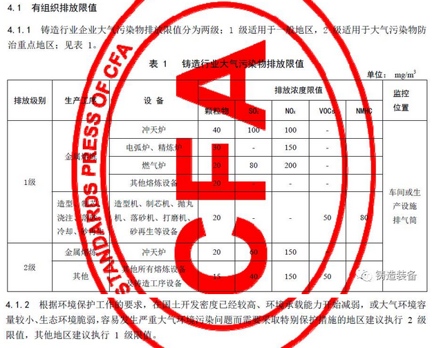 現摘錄T/CFA030802-2—2017中“4排放控制要求”、“5污染物監測要求”、“6實施與監督”部分。前三部分“1范圍、2規范性引用文件、3術語與定義”請自行登錄中國鑄造協會網站查閱。