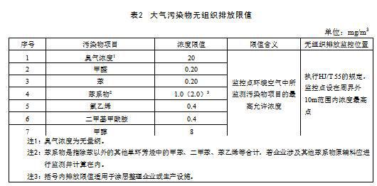 (2)自本標準實施之日起,紡織染整企業大氣污染物無組織排放監控點濃度限值應符合表2規定。