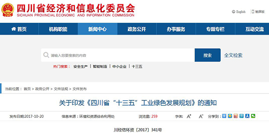 四川省出臺了《四川省“十三五”工業綠色發展規劃》