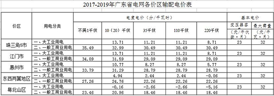 附件:2017-2019年廣東省電網(wǎng)各價區(qū)輸配電價表