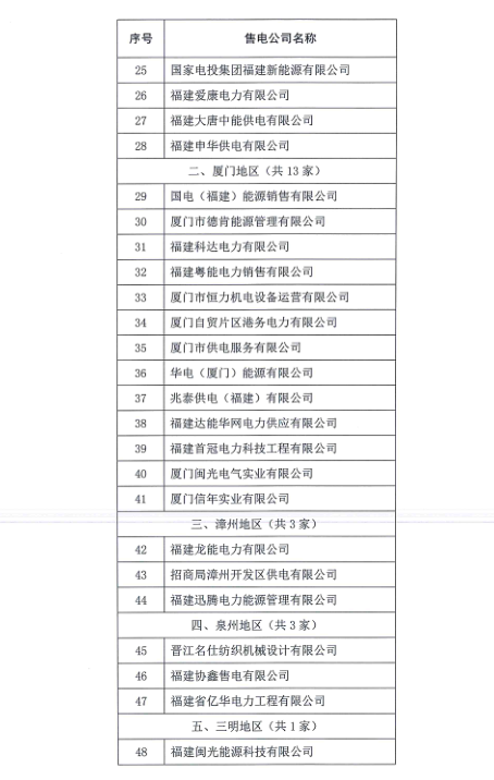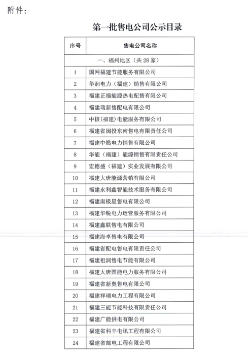 福建電力交易中心12月18日發(fā)布了關(guān)于公示2017年第一批受理注冊售電公司相關(guān)信息的公告,本次一共公示53家售電公司,從第一批售電公司的公布情況來看,福州地區(qū)占比最大,一共有28家,其次為廈門地區(qū)有13家,此外漳州地區(qū)有3家,泉州地區(qū)有3家,三明地區(qū)1家,南平地區(qū)1家,寧德地區(qū)4家。公示期為2017年12月18日至2018年1月17日,時間1個月。