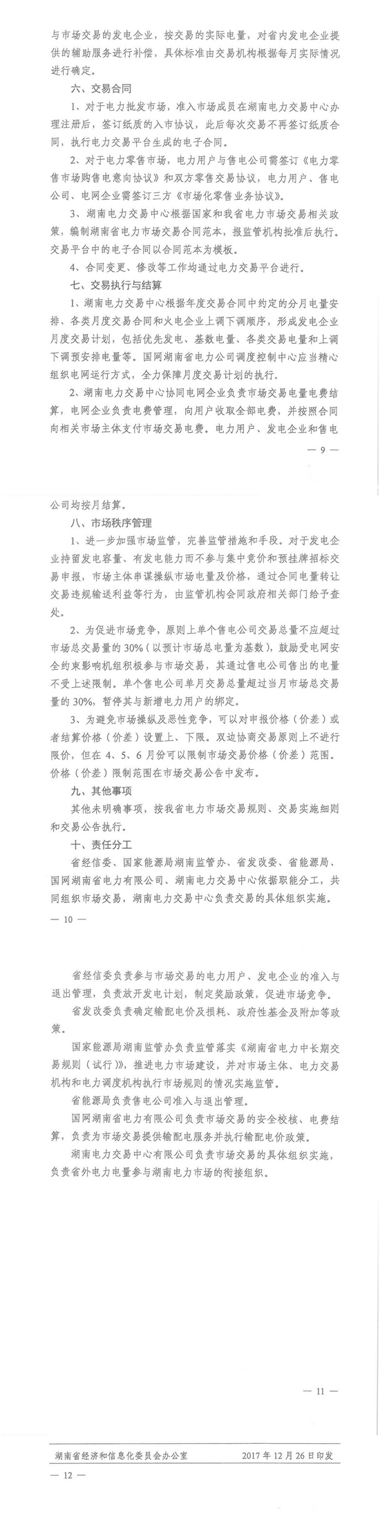 湖南省經信委發布:關于組織開展2018年電力市場交易的通知