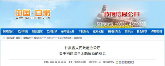 甘肅省印發(fā)構建綠色金融體系意見 推動綠色發(fā)展