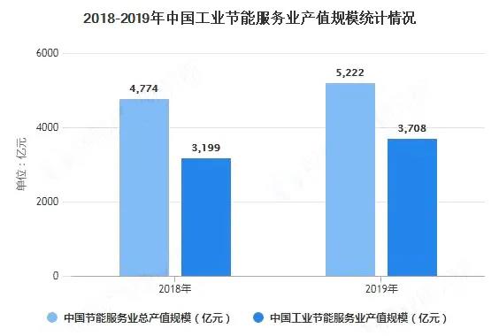 近年來(lái),節(jié)能服務(wù)產(chǎn)業(yè)總產(chǎn)值不斷增長(zhǎng),呈逐年上漲趨勢(shì)。中國(guó)節(jié)能協(xié)會(huì)數(shù)據(jù)顯示,2019年我國(guó)節(jié)能服務(wù)產(chǎn)業(yè)總產(chǎn)值達(dá)5222億元,同比增長(zhǎng)9.38%。根據(jù)《“十三五”節(jié)能環(huán)保產(chǎn)業(yè)發(fā)展規(guī)劃》,到2020年節(jié)能服務(wù)業(yè)總產(chǎn)值達(dá)到6000億元。我國(guó)節(jié)能服務(wù)行業(yè)潛力巨大。