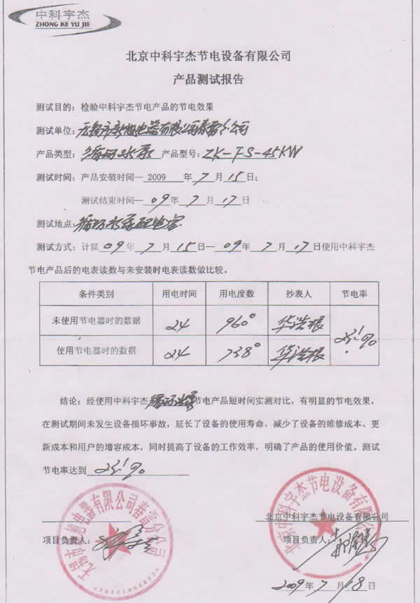 工程竣工后,中科宇杰工程人員對現場進行回訪,節電達到預期的23.1%,效果明顯。改造的水泵和節能設備至今運行平穩,節電效果持續有效。