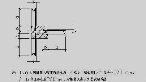 圖3.6.12  砌體與混凝土墻柱設(shè)置拉結(jié)筋示意