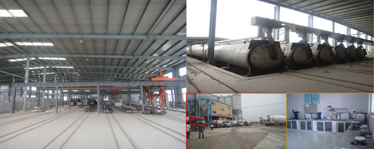 加氣混凝土設備生產工藝分為—原料處理—配料、攪拌、澆注、—初養、切割—蒸壓、碼垛等工序。1、加氣混凝土砌塊原材料處理 粉煤灰(或砂、石粉)經電磁振動給料機、膠帶輸送機送入球磨機,磨細后的粉煤灰(或砂、石粉)用粉煤灰泵分別送至料漿罐儲存。 石灰經電磁振動給料機、膠帶輸送機送入顎式破碎機進行破碎,破碎后的石灰經斗式提升機送入石灰儲倉,然后經螺旋輸送機送入球磨機,磨細后的物料經螺旋輸送機、斗式提升機送入粉料配料倉中?;瘜W品按一定比例經人工計量后,制成一定濃度的溶液,送入儲罐內儲存。鋁粉由鋁粉庫運至生產車間,用電葫蘆提升到配料樓二樓倒入攪拌機中定量加水,攪拌成鋁粉懸浮液